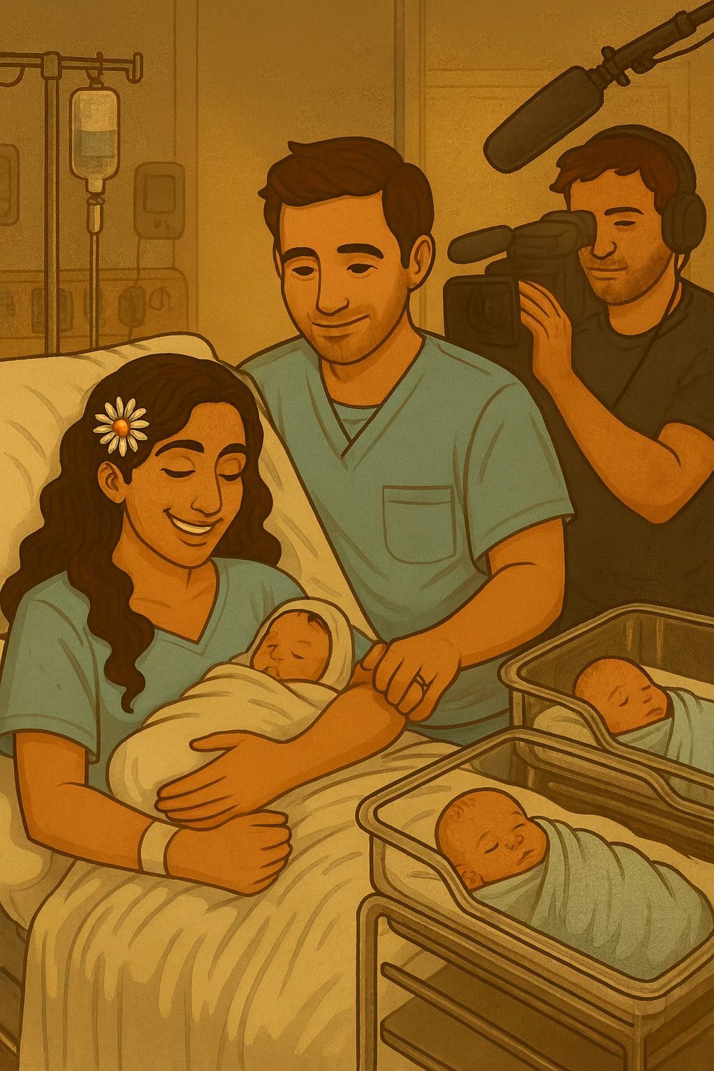 We had the triplets at a major city hospital, the kind you see on medical shows. One day at a prenatal appointment, a cameraman overheard I was having triplets and followed me into the hallway. Within hours, a production company was begging us to be part of a documentary series they were filming about high-risk pregnancies. I went into labor that same day. The timing was cosmic.